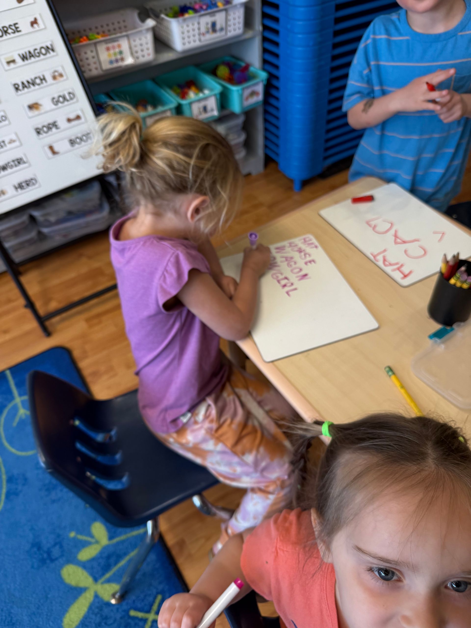 - Children explore writing tools, scribble, and create marks. They learn about letters and their sounds.