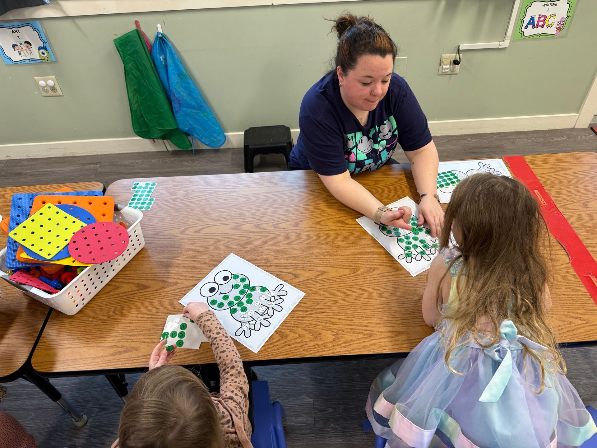 - Children experiment with various art materials, colors, and techniques. They learn about shapes, patterns, and visual aesthetics.